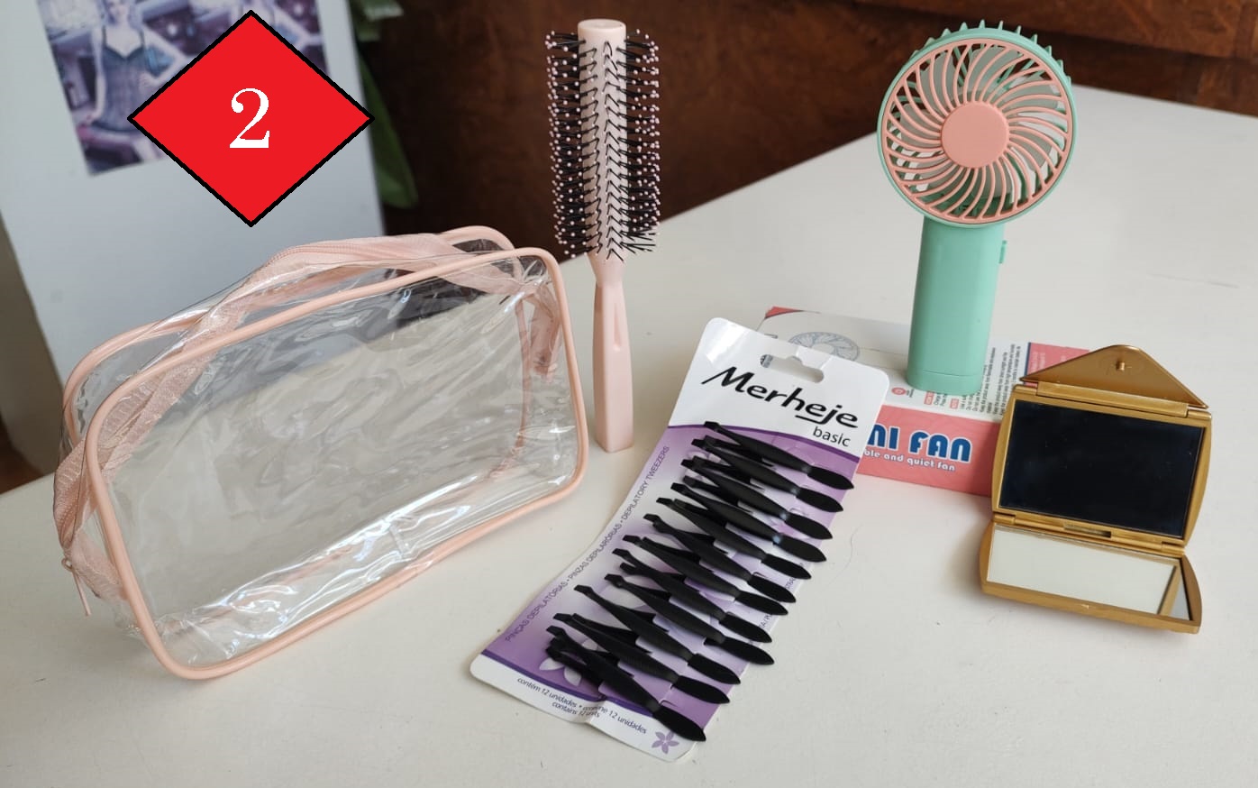 COMBO 2: VENTILADOR DE MANO + PORTA COSMÉTICOS + ESPEJO DE MANO + PACK X12 PINZAS DE DEPILAR