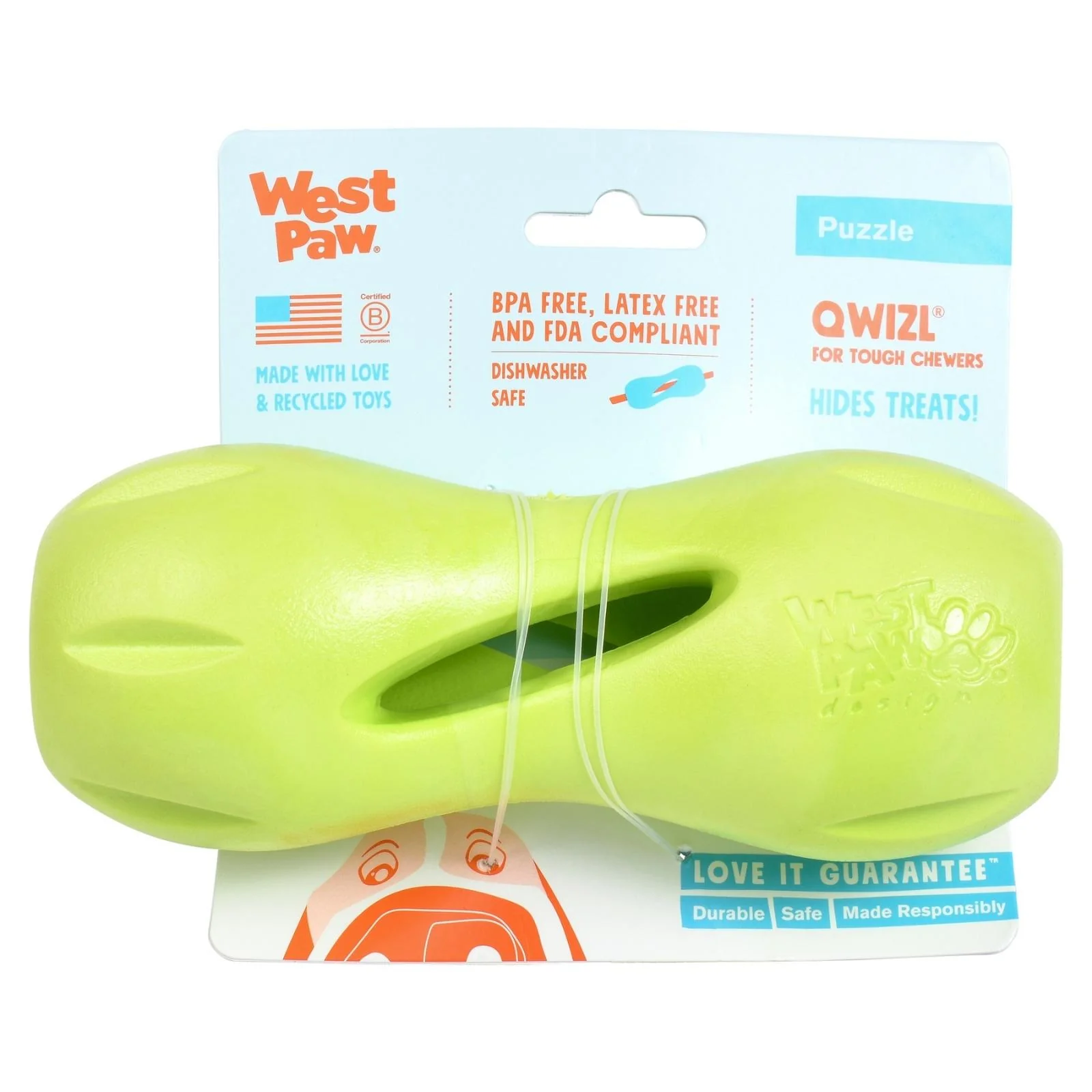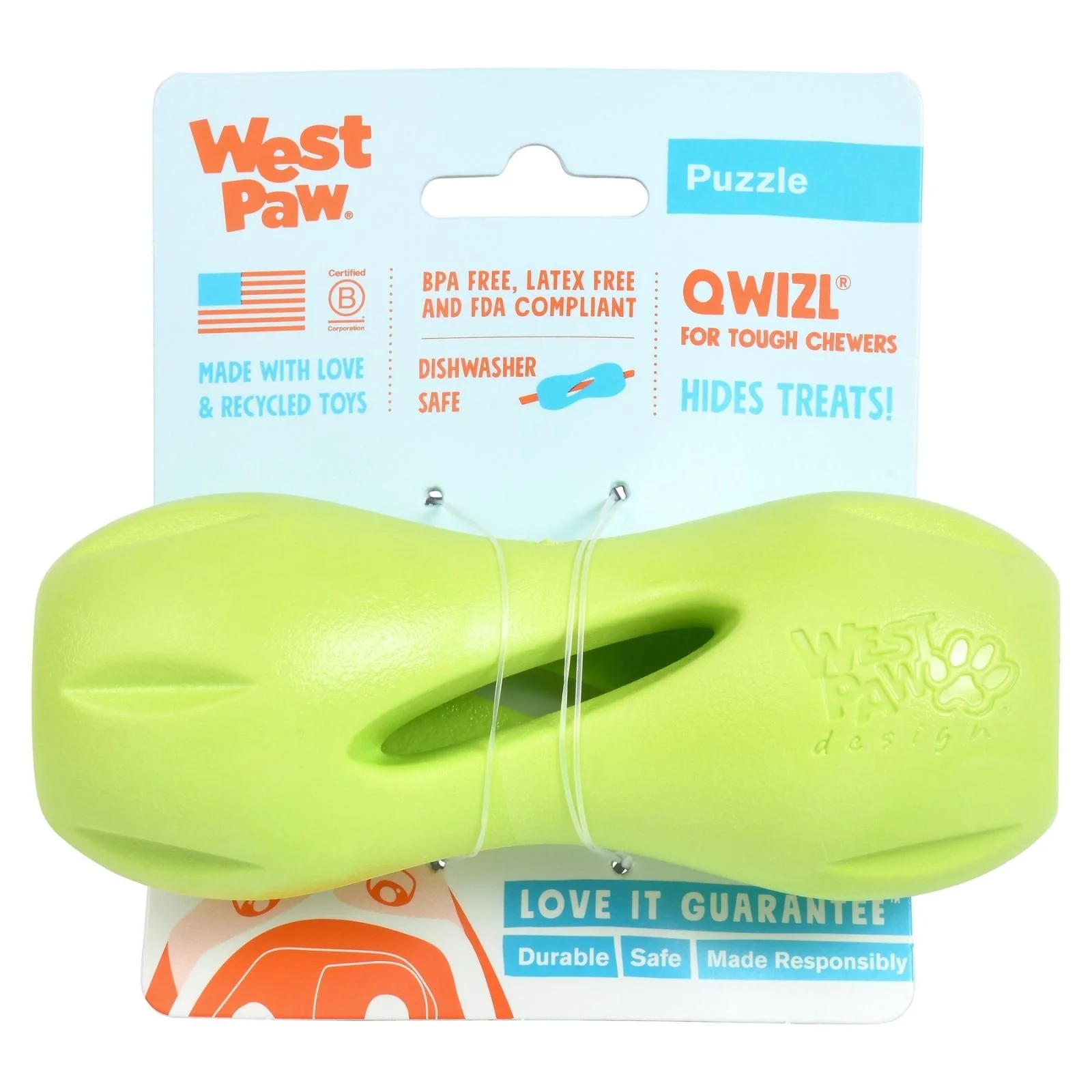 Qwizl es un juguete dispensador, rompecabezas para perros y es extremadamente resistente.