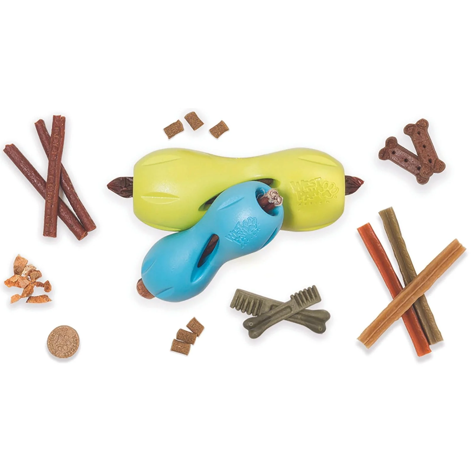 - Para mantener a tu perro motivado, incrementa el desafío con los otros juguetes rompecabezas de West Paw: Rumbl®, Toppl® y Tux®.