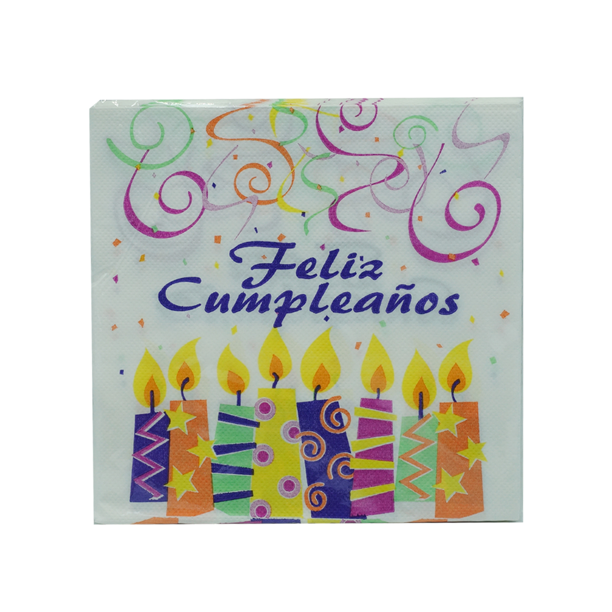 Paquete de servilleta de papel para cumpleaños con variedad de diseños.