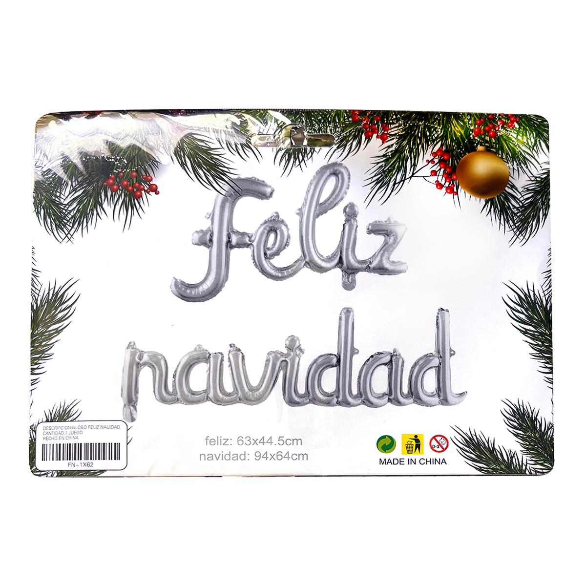 El set de globos Feliz Navidad es un adorno ideal para decorar fiestas y reuniones en la temporada decembrina. Este paquete incluye dos globos metálicos en forma de letras que forman la frase “Feliz Navidad”, con un diseño llamativo y brillante que aporta un ambiente festivo.