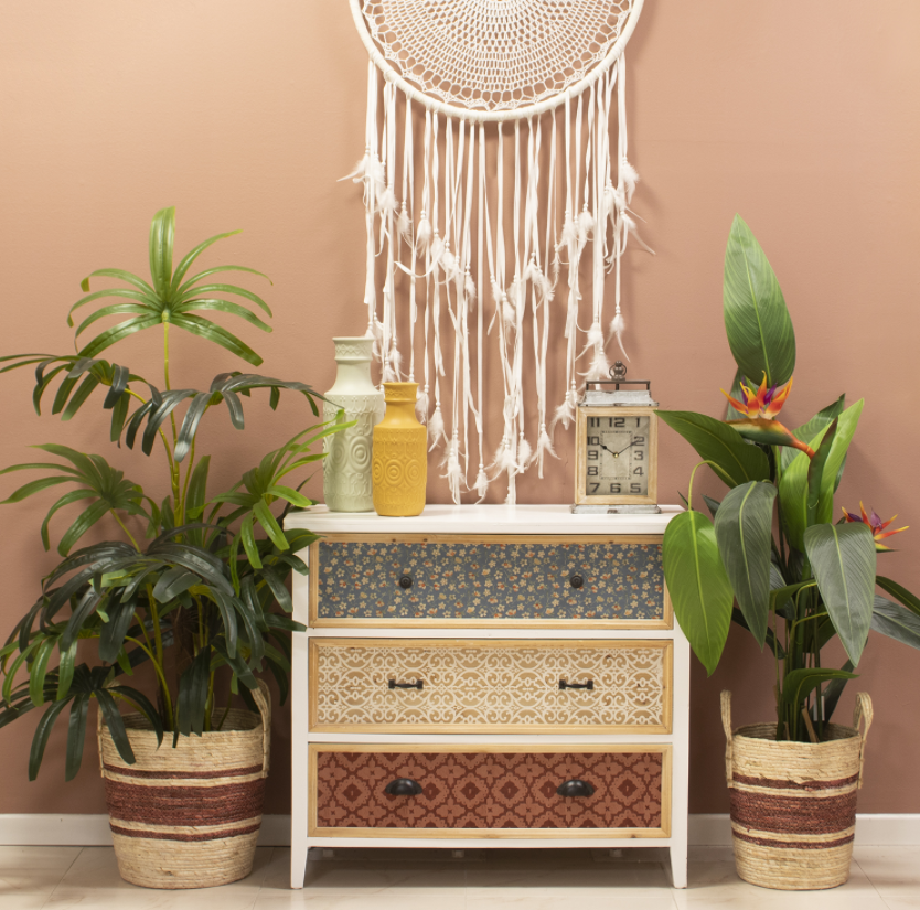 Conjunto de dos mesas doradas.