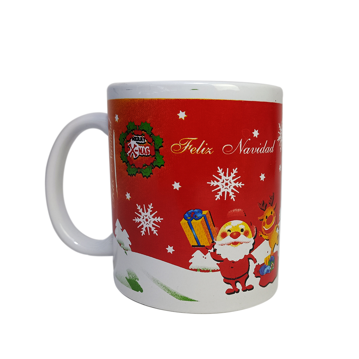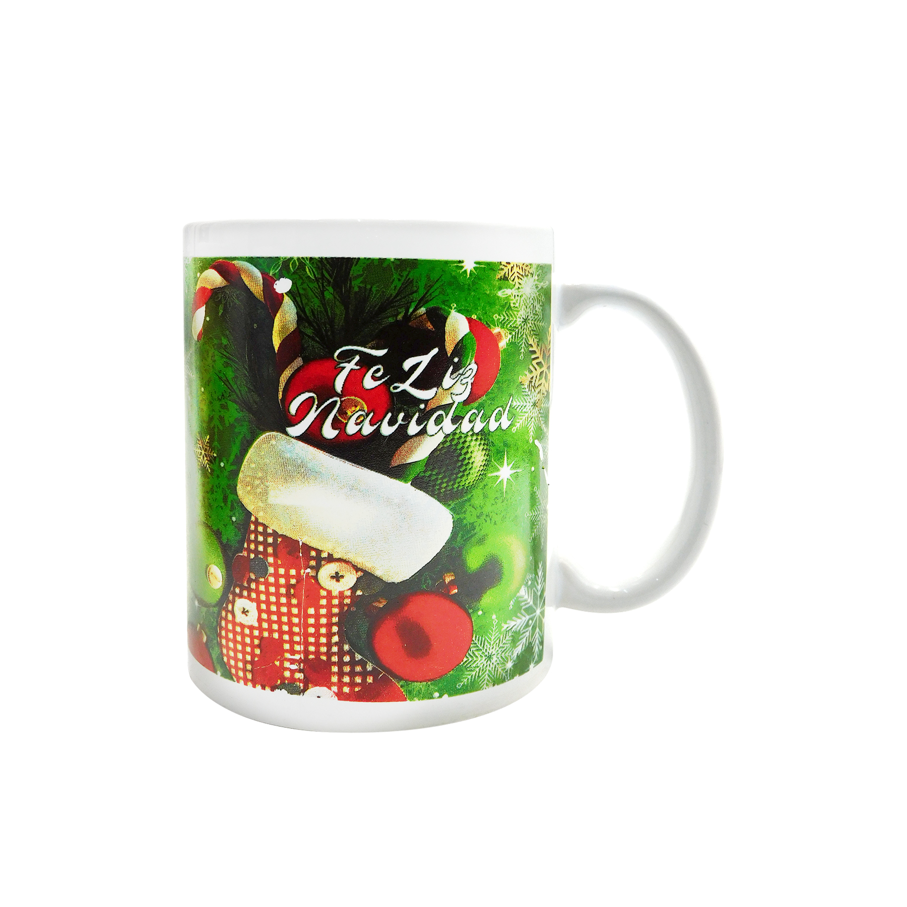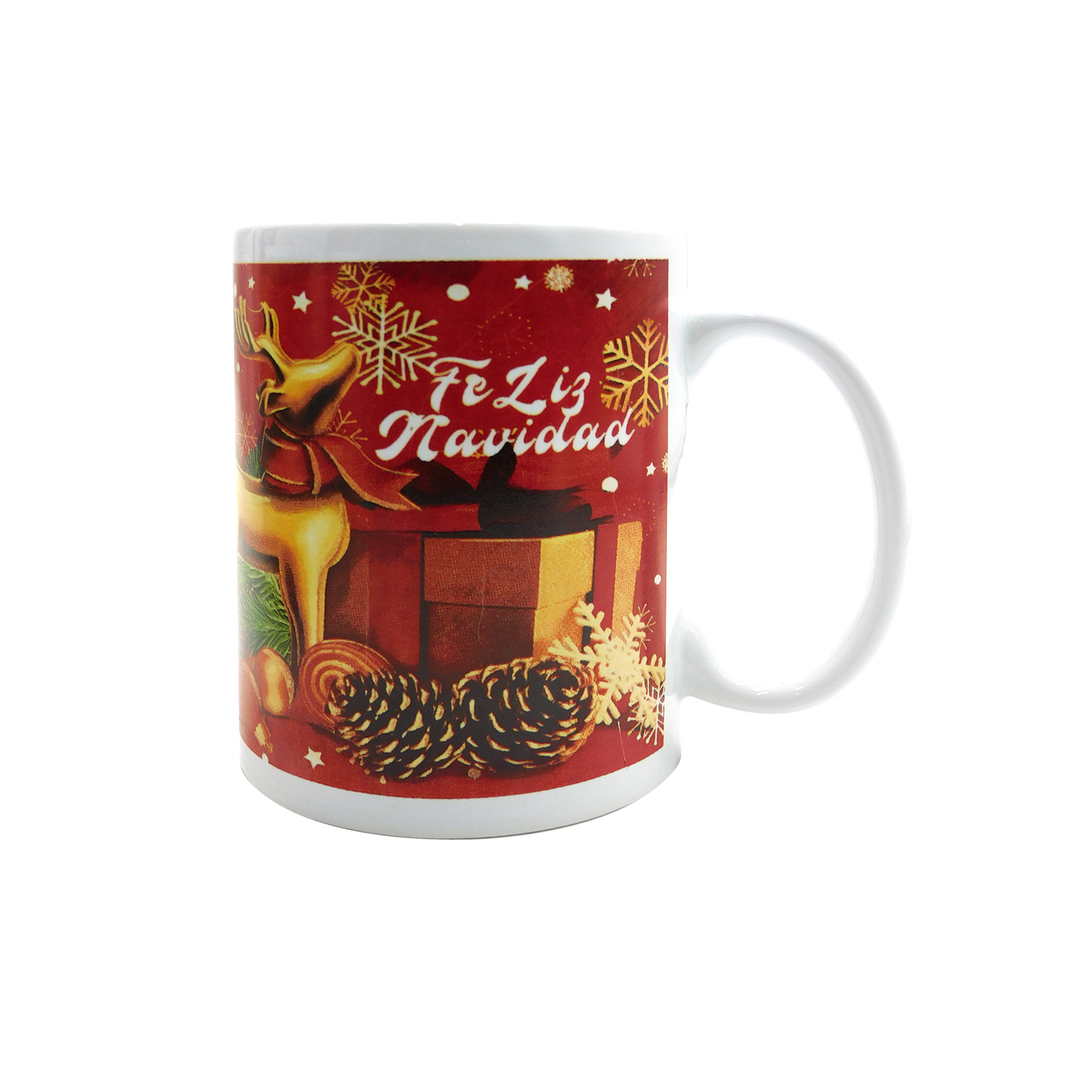 Taza clásica con estampado navideño, disponible en varios diseños festivos. Perfecta para disfrutar tus bebidas favoritas durante la temporada, esta taza combina funcionalidad con un toque alegre y decorativo. Con sus motivos navideños únicos, es ideal para el hogar o como regalo especial para añadir espíritu festivo a cada sorbo.