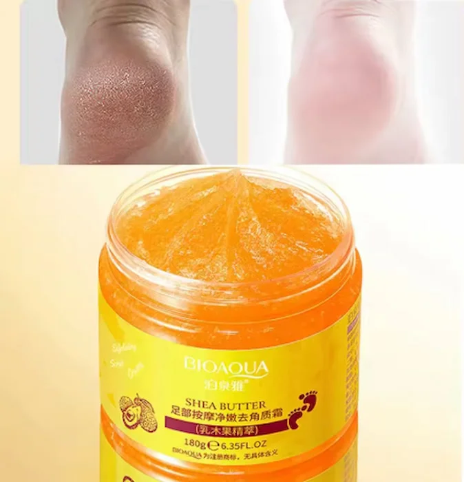 Exfoliante Bioaqua para pies de 180 ml que elimina células muertas e impurezas, dejando la piel suave, renovada y con sensación de frescura profunda.