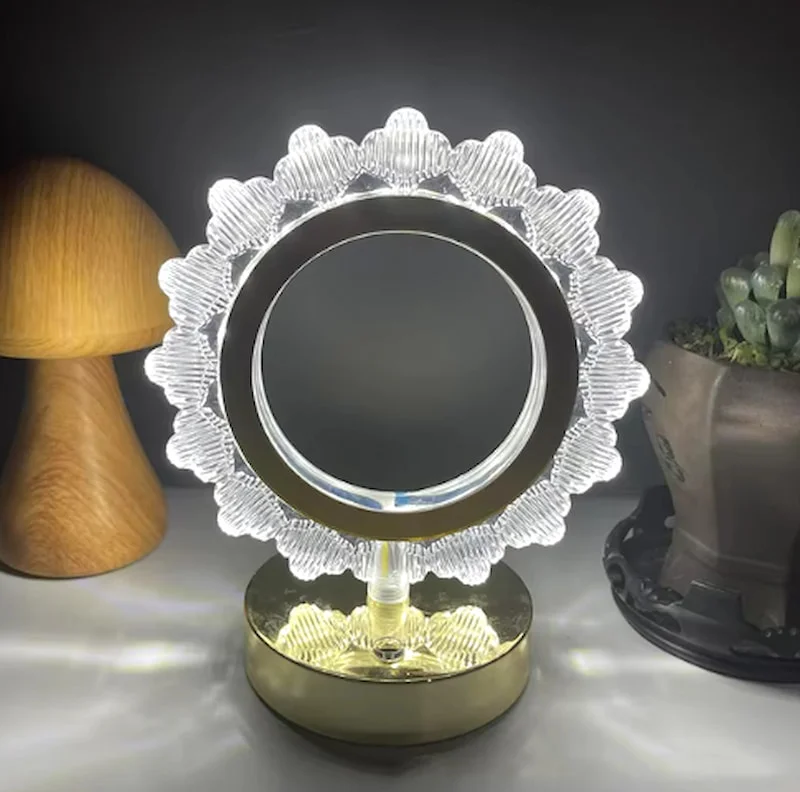 Mini lámpara de flor con luz cálida y cabeza móvil 360°, perfecta para iluminar con encanto y total flexibilidad.