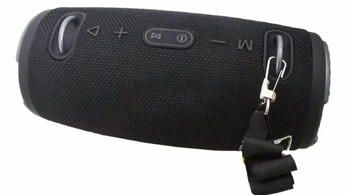 Bocina cilíndrica Xtreem3 Mini, compacta y potente, incluye cable de carga y tira para colgarla fácilmente. Ideal para disfrutar de música en cualquier lugar con comodidad y estilo.