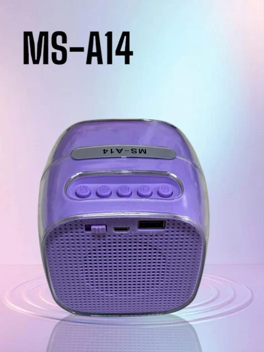 Bocina pequeña con luz LED, modelo MS-A10. Portátil, con efectos de luz vibrantes y sonido claro, ideal para acompañar tu música en cualquier lugar. Perfecta para fiestas o reuniones.