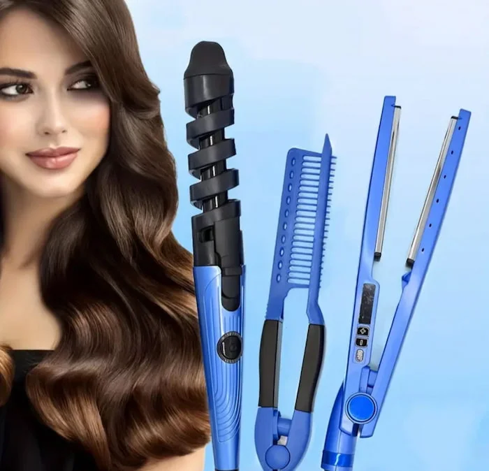 Set de alisado y rizado con tecnología nano titanium: incluye plancha, rizadora y peine . Calentamiento ultra rápido hasta 450°F, placas anchas para un alisado 40% más rápido. Ideal para alisar, rizar y ondular con facilidad y precisión.