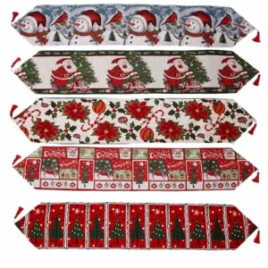 El camino de mesa navideño es un accesorio decorativo que añade un toque festivo a las celebraciones. Generalmente confeccionado en telas como lino o algodón, presenta diseños típicos de la temporada, como copos de nieve, árboles de Navidad o motivos de renos. Perfecto para embellecer mesas en cenas familiares o reuniones, este camino de mesa combina elegancia y calidez, creando un ambiente acogedor y festivo.