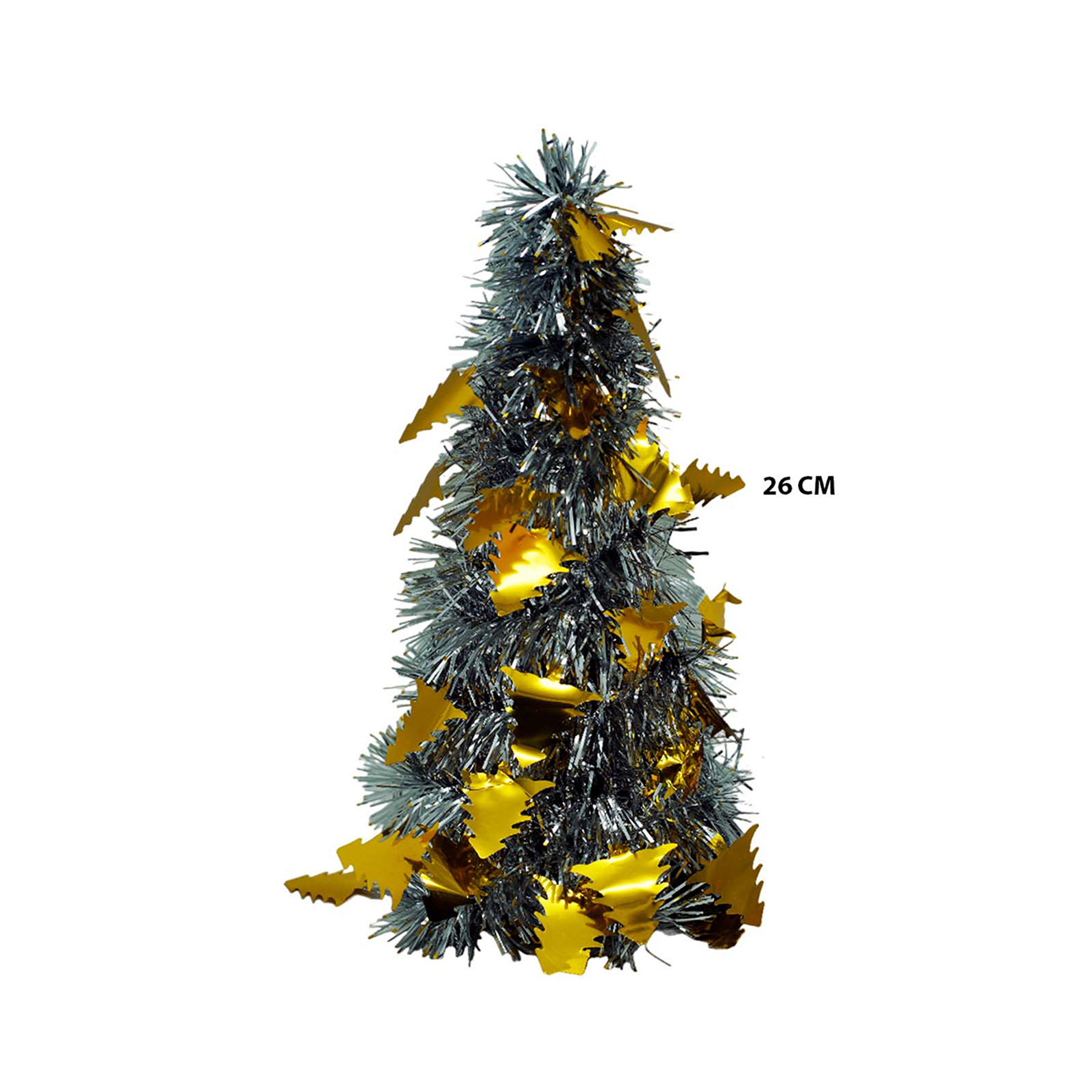 Pino navideño de 15 cm con luz LED, ideal para decorar escritorios, mesas y rincones con un toque festivo.