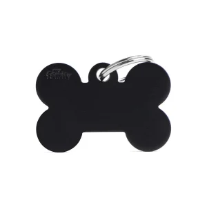 Placa ID de Aluminio Chica Negra en Forma de Hueso para Perros