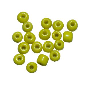 Chaquirón de vidrio color amarillo mate, acabado elegante y resistente, bolsa con 450 g ideal para bisutería y artesanías.