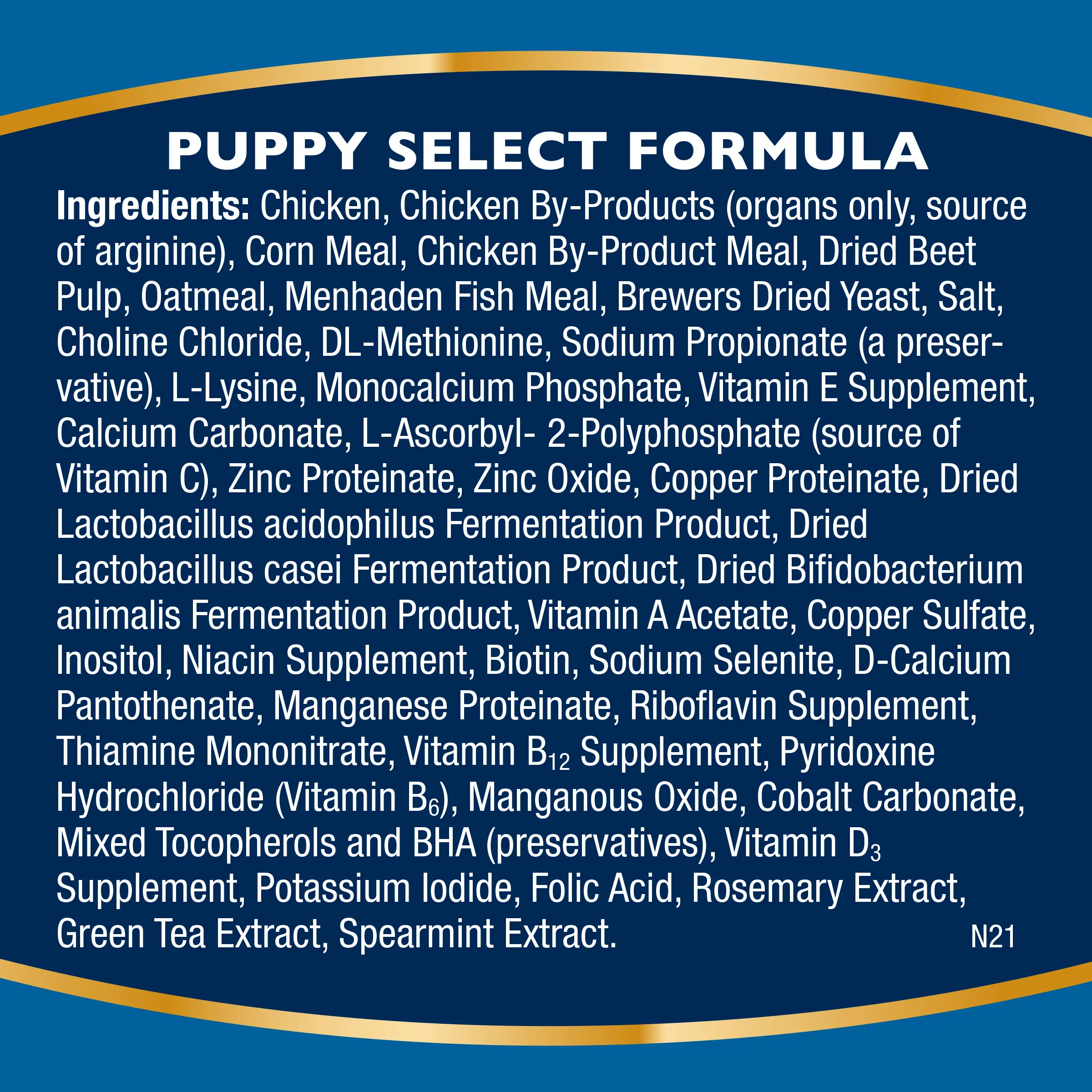 Bil-Jac® Puppy Select Formula está formulado para cumplir con los niveles nutricionales establecidos por los perfiles de nutrientes de alimentos para perros de la AAFCO para el crecimiento, incluyendo razas grandes (más de 31.8 kg como adulto).