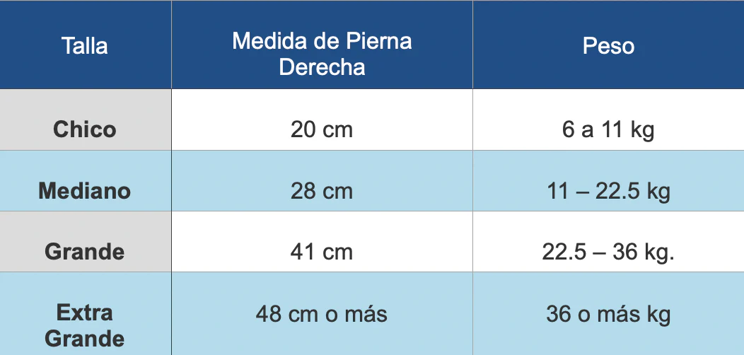 Una vez que hayas medido, consulta la tabla de abajo. Encuentre el rango de medida y peso que mejor se adapte a su mascota. Si se encuentra entre dos tallas, es mejor seleccionar el rango de peso más cercano a su mascota. Recuerde que la medida de su mascota puede no coincidir exactamente con la tabla.