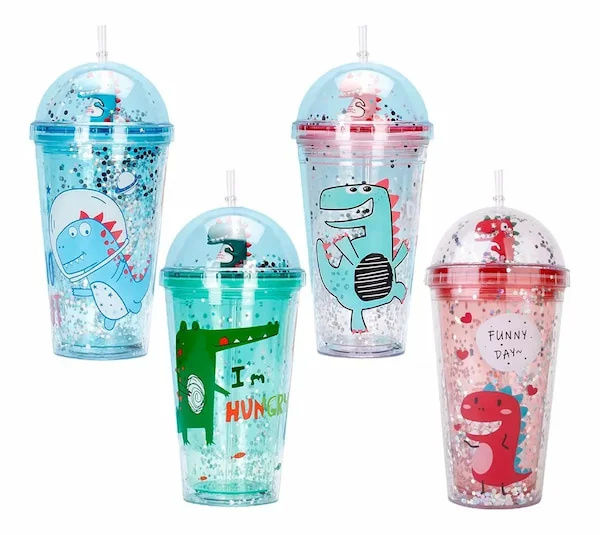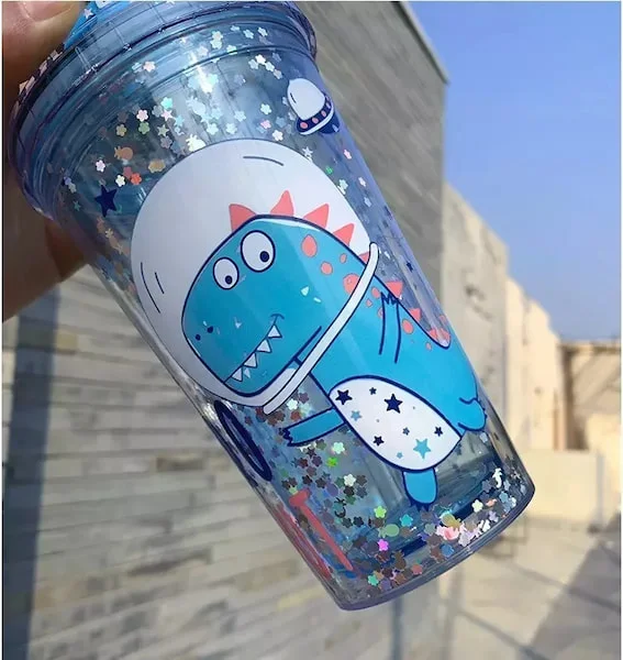 Botella de Agua con Dinosaurios y Popote de 450 ml: Diversión y Hidratación en Cada Sorbo
