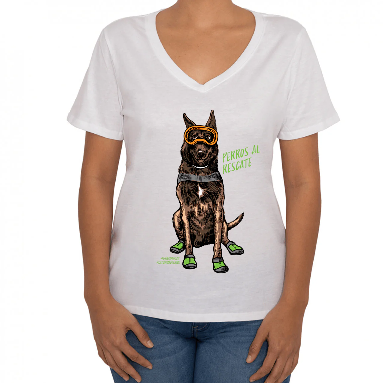 Camiseta Dama para Perros al Rescate: Perro Militar Malinois en Blanco