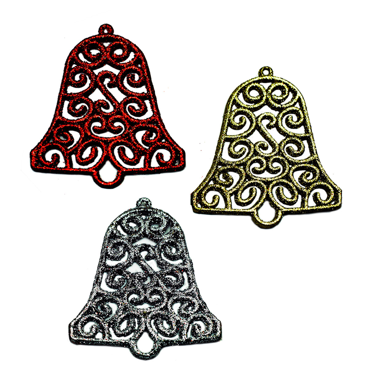 El juego de 3 campanas diamantadas navideñas es una pieza decorativa que combina brillo, textura y elegancia. Fabricadas en plástico calado con acabado diamantado, estas campanas reflejan la luz con destellos encantadores, creando una atmósfera festiva que embellece cualquier espacio. Cada set incluye tres campanas en diferentes colores, ideales para crear composiciones llenas de armonía y estilo.