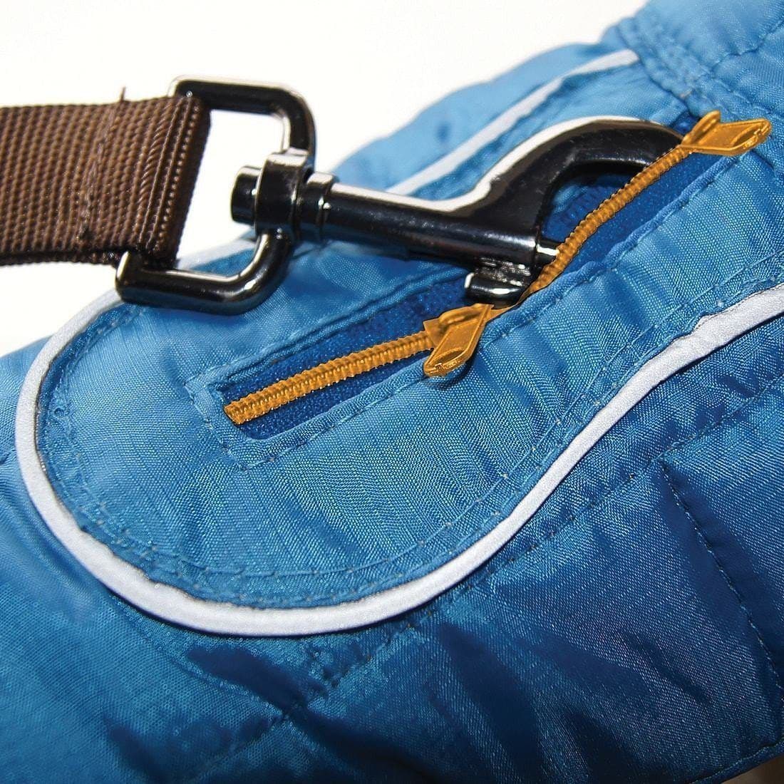 Además, la tela externa es totalmente repelente al agua y tiene una apertura de zipper para que puedas ponerle la chamarra sobre el arnés de tu perro y poder