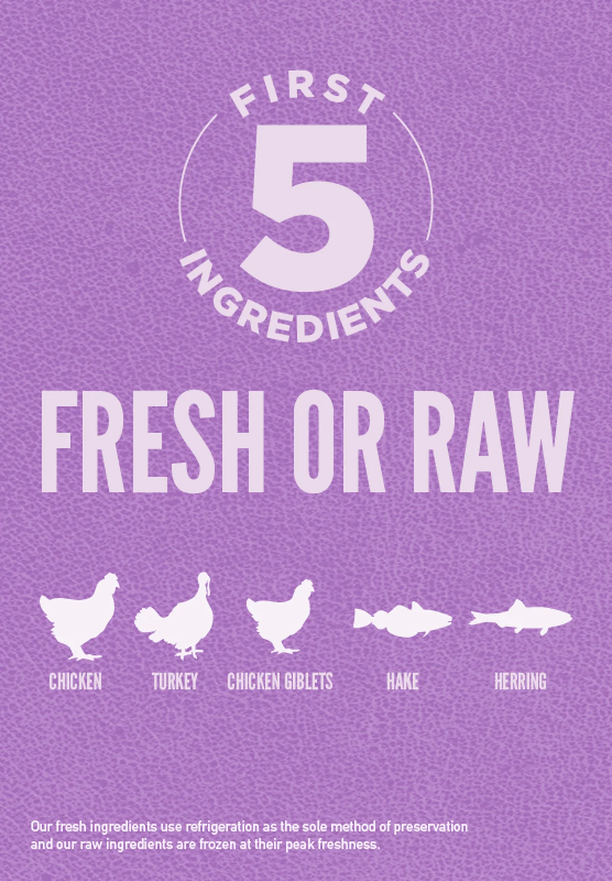 - Inigualado por cualquier otro alimento para cachorros, 2/3 de las carnes de ORIJEN son FRESCAS (refrigeradas, sin conservantes) o CRUDAS (de congelación rápida, sin conservantes), e incluyen los 10 ingredientes principales.