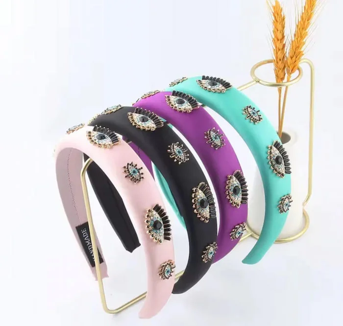Realizada con materiales de alta calidad, cada diadema está adornada con el característico ojo turco, conocido por su poder protector. Es el complemento ideal para cualquier evento, desde una celebración casual hasta una ocasión formal.