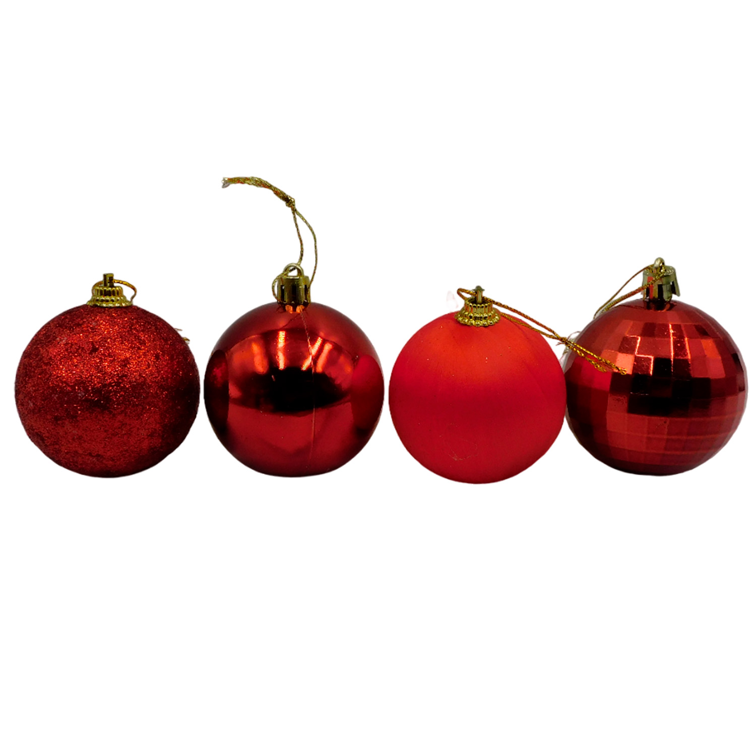 Ilumina tu hogar con la magia de la Navidad con nuestra docena de esferas navideñas con 4 acabados diferentes. Cada esfera ha sido cuidadosamente diseñada y elaborada con materiales de alta calidad para garantizar su durabilidad y brillo. Los cuatro acabados distintos incluyen brillo, mate, diamantada y espejo, cada uno aportando un toque único y especial a tu árbol de Navidad. Estas esferas son resistentes a la rotura, lo que las hace seguras para hogares con niños y mascotas.