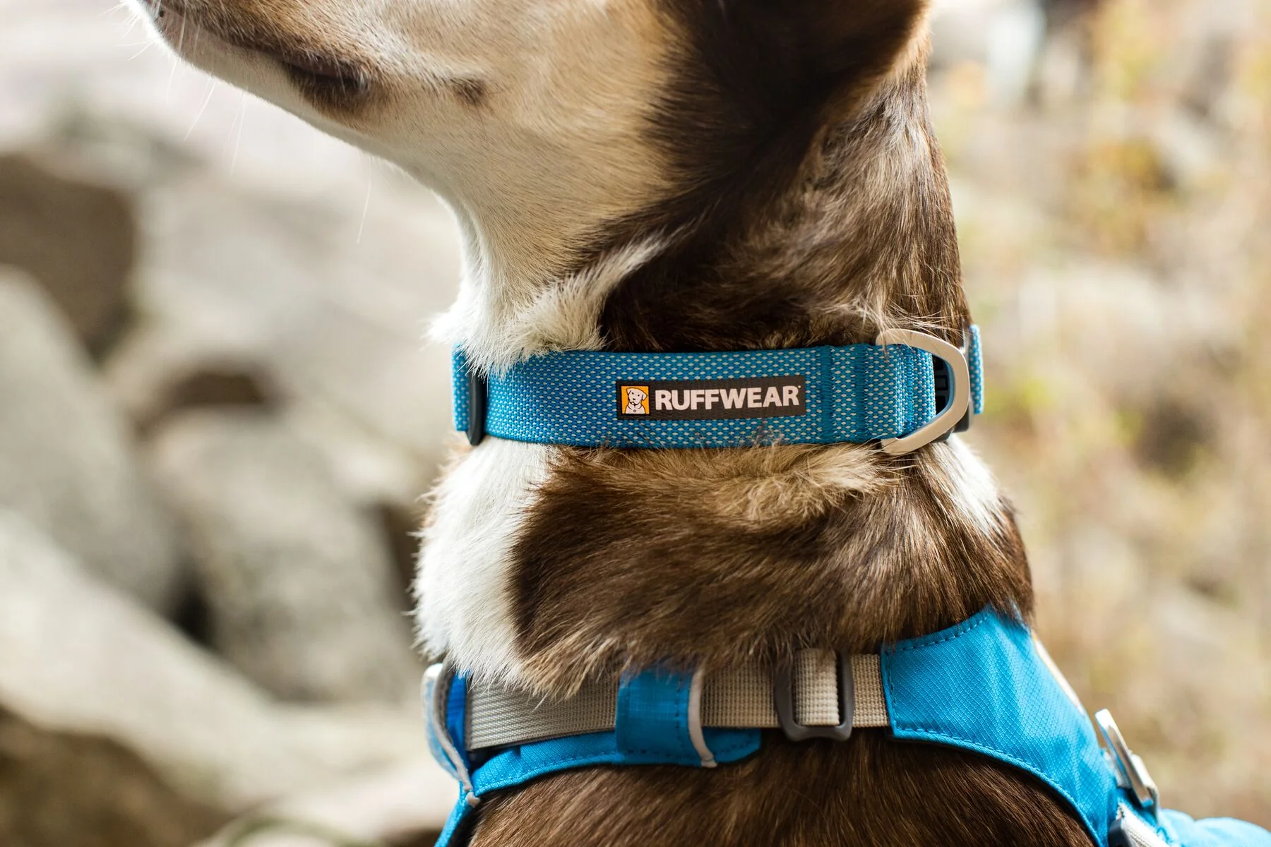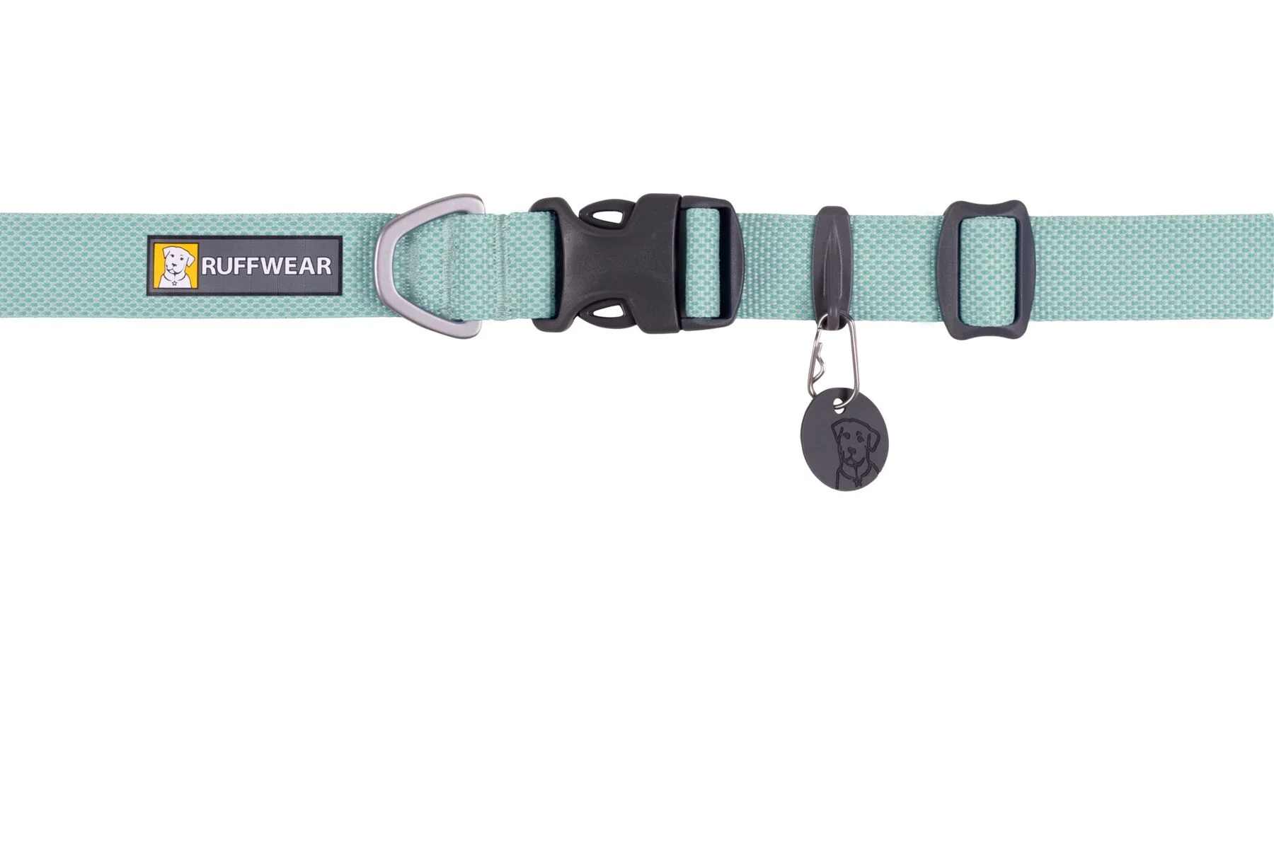 Cuenta con las características propias de los collares Ruffwear: una argolla en D de aluminio, un punto de enganche para la placa de identificación separado del anillo para la correa y un silenciador de silicona para la placa.