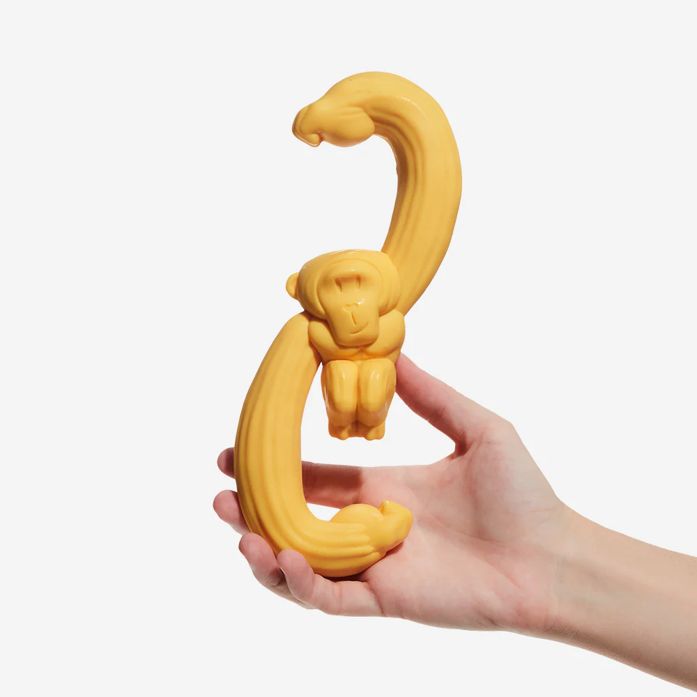 El **Hooky Frutty** de Zee.Dog es un juguete de masticar ultra duradero diseñado para perros medianos y grandes que disfrutan de morder intensamente. Con un divertido diseño inspirado en un plátano y un sutil aroma a banana, este juguete no solo mantiene a tu perro entretenido, sino que también ayuda a limpiar sus dientes mientras mastica.