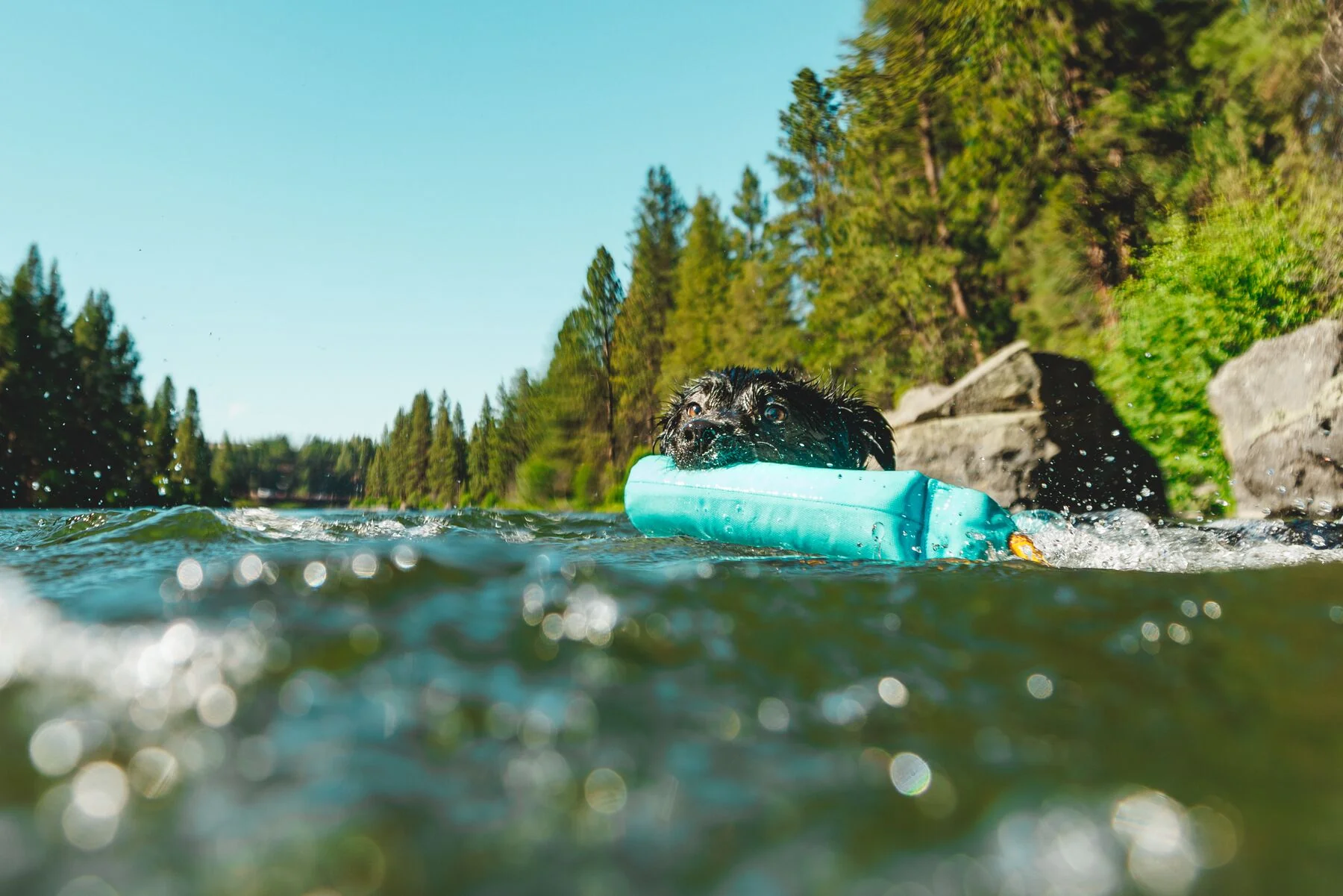 Su práctica cuerda tipo kernmantle no solo hace que sea más fácil aventarlo lejos, también evita que tengas que tocarlo cubierto de baba. Este juguete es suave pero resistente y flota alto para ser visible incluso en el agua más movida.