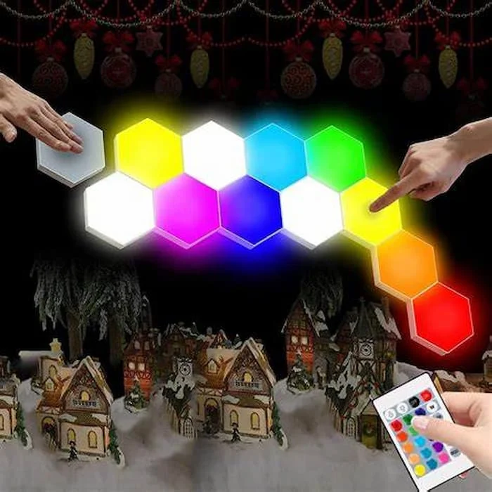 El panel de luz hexagonal es un sistema de iluminación decorativa que consiste en módulos con forma hexagonal, que se pueden interconectar y personalizar en diferentes configuraciones. Su diseño moderno y elegante permite crear patrones únicos en paredes o techos, proporcionando una iluminación ambiental suave y acogedora. Muchos modelos son ajustables en color y brillo, controlados por aplicaciones o controles remotos, lo que los hace ideales para cualquier espacio, desde hogares hasta oficinas.