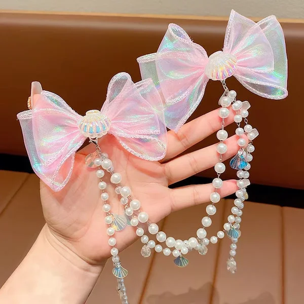 Perfectas para añadir un toque de fantasía a cualquier peinado, estas pinzas son ideales para niñas que adoran el mundo de las sirenas y los accesorios brillantes. El diseño con perlitas no solo es sofisticado, sino que también agrega un toque encantador que hace que cada look sea único.