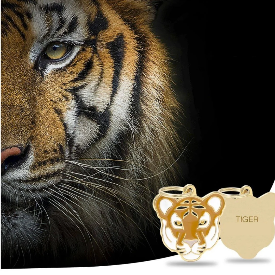 La placa de identificación inspirada en el tigre es como un tributo a la esencia indomable y salvaje que vive en tu fiel compañero. Es un símbolo de su valentía y su espíritu audaz, irradiando carácter en cada paso que da.