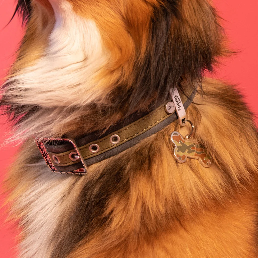 La placa de identificación camuflaje es como una declaración de la conexión íntima de tu fiel compañero con el mundo natural que lo rodea.