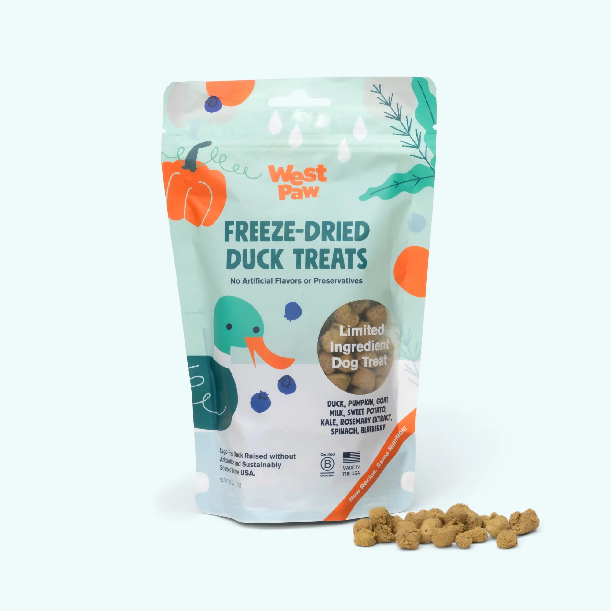 El Premio Liofilizado de Pato con Superalimentos de West Paw combina proteína de alta calidad con ingredientes funcionales para ofrecer a tu perro un snack delicioso y nutritivo. Elaborado con pato de crianza libre y una mezcla de superalimentos como calabaza, camote, arándanos, espinaca y col rizada, este premio es ideal para perros con sensibilidad al pollo.