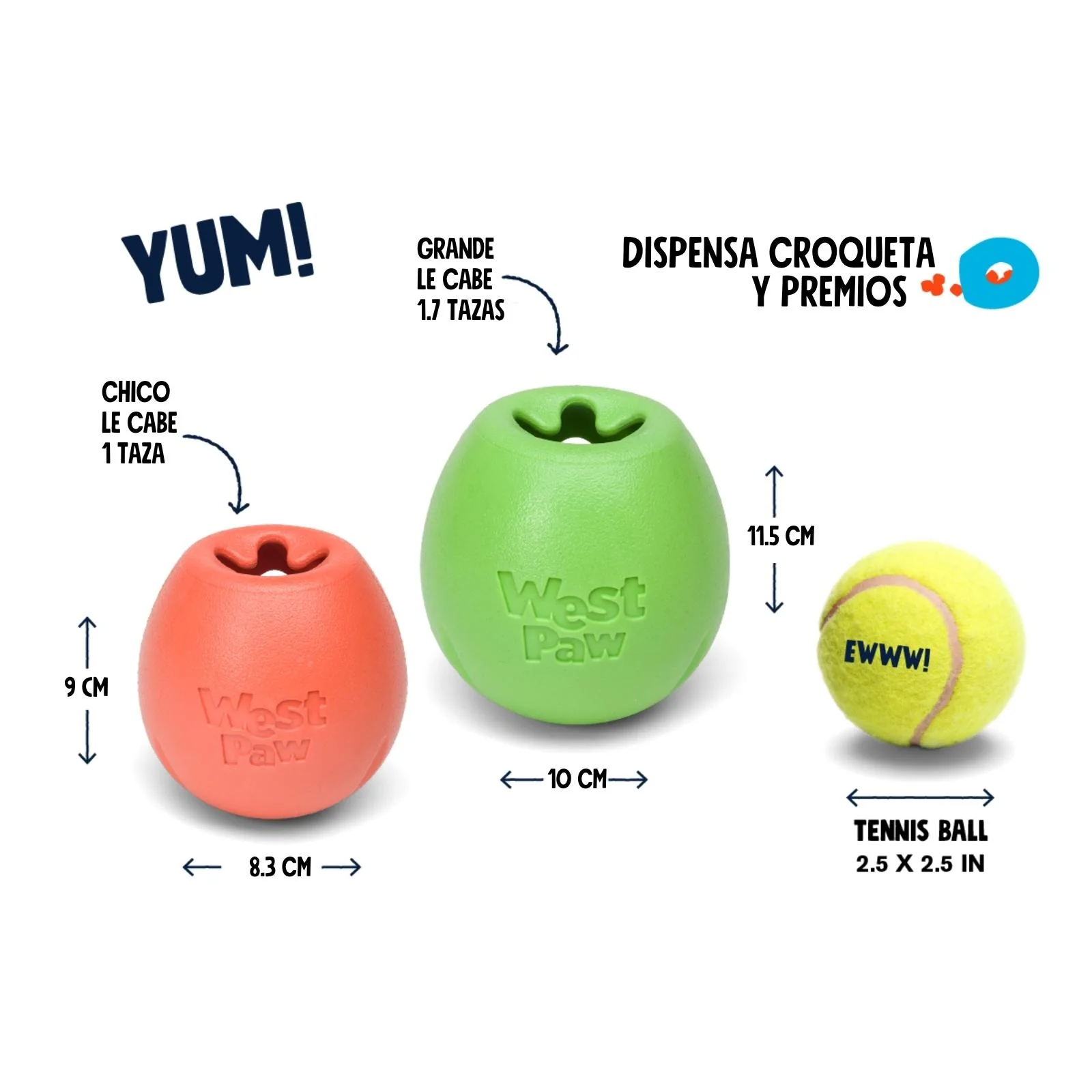 ¡Que empiece la cacería de croquetas más divertida! Rumbl® de West Paw® es un juguete dispensador que rebota, bambolea y desafía la mente de tu perro. Su boca superior ancha facilita el relleno, mientras que el diseño interior atrapa las croquetas para que tu peludo deba moverlo, golpearlo y masticarlo hasta liberar cada premio. Diversión activa + alimentación lenta = mascota más feliz y tranquila.