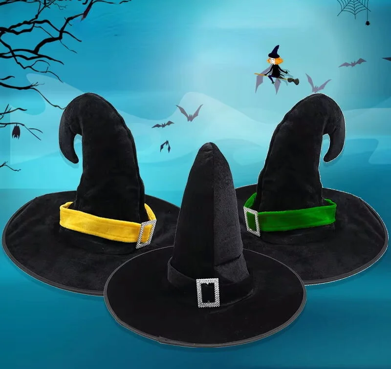 🎩 Diseño Clásico: Con su elegante forma de punta y ala ancha, este sombrero captura la esencia clásica de las brujas y magos, ideal para crear un look inolvidable en tus fiestas.