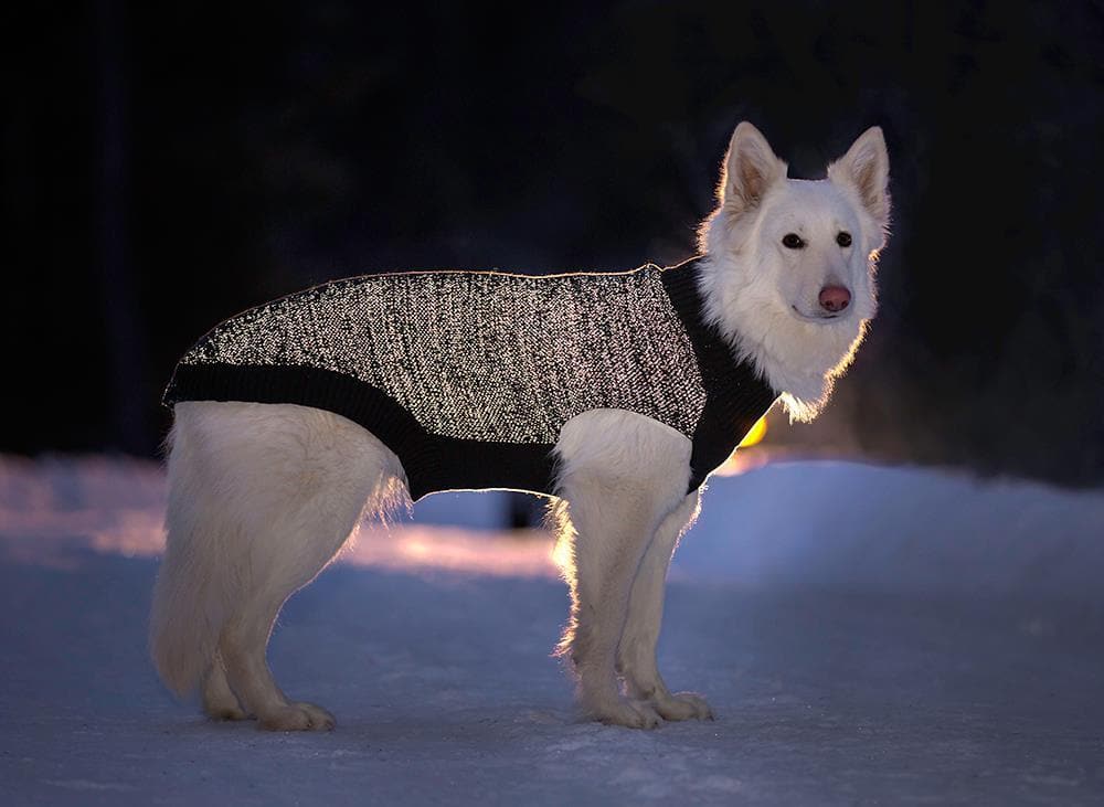 Este suéter está tejido con un hilo altamente reflejante para una máxima visibilidad en poca luz – cuando la luz se refleja en él, ¡parece que está generando chispas! También cuenta con un exclusivo ojal integrado para la Luz Led Poppin’ Light (se vende por separado) para que tú y tu compañero de peludo sean un espectáculo que todo el mundo verá.